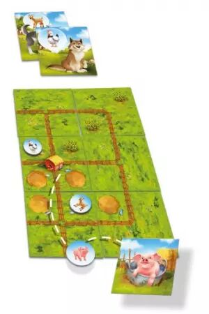 Dans Farmini, chacun a face à lui une ferme qu'il va devoir agrandir. Tour à tour, pioche une carte parmi les 4 qui se trouvent au centre de la table. Si c'est une carte Enclos : à la façon des dominos, dépose cette nouvelle carte dans ta ferme en faisant correspondre les barrières. Si tu choisis de prendre une carte Animal : dépose un animal dans les espaces prévus pour leur sécurité. Tente de protéger le maximum d'animaux et le maximum de champs de maïs afin de marquer le plus de points possible. Gare au loup, car s'il apparaît, il mangera les animaux qui ne sont pas encore protégés par les enclos.