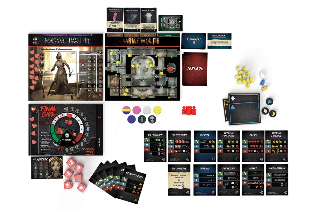 Vous avez toujours rêvé de jouer dans votre propre film d’horreur ? C’est votre chance ! Dans Final Girl, Vous incarnez l’héroïne de l’histoire. Ce jeu solo donne vie aux référentiels des classiques du genre, grâce à un système novateur et quasi inépuisable : les Longs Métrages.