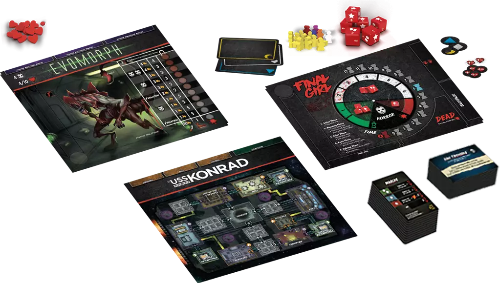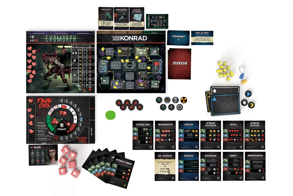Le jeu de la vie et de la mort peut même se dérouler dans le vide intersidéral. L’Évomorph se transformera au fil de la partie et peut disparaître pour revenir au moment où vous vous y attendez le moins… ou serez-vous assez malin pour le faire tomber dans votre propre embuscade ? L’USS Konrad introduit des cartes d’accès pour accéder à différentes parties du vaisseau.