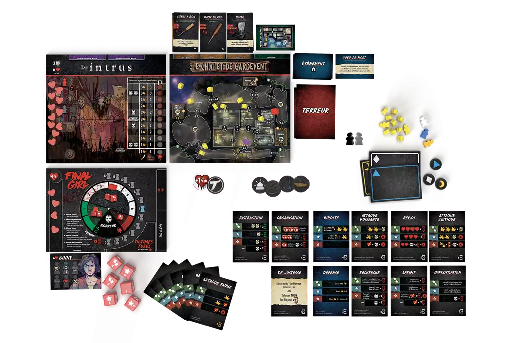 Vous avez toujours rêvé de jouer dans votre propre film d’horreur ? C’est votre chance ! Dans Final Girl, Vous incarnez l’héroïne de l’histoire. Ce jeu solo donne vie aux référentiels des classiques du genre, grâce à un système novateur et quasi inépuisable : les Longs Métrages.