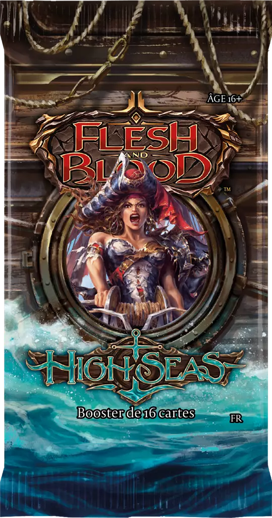 High Seas est la 16ème extension de Flesh and Blood. Elle introduit les classes très attendues Pirate et Nécromancien. L'édition est composée de 265 cartes dont 1 Fabuleuse, 6 Légendaires, 46 Majestueuses, 64 Rares et 127 communes ainsi que 21 Merveilles.
