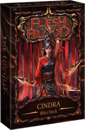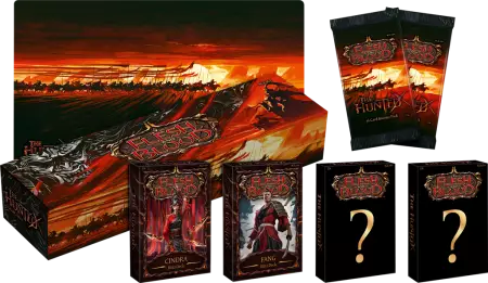 Each The Hunted Blitz Deck contains 40 cards, plus hero, weapon, equipment, and token cards, with each deck containing a rainbow foil hero card and non-foil extended art cards exclusive to that deck. Each The Hunted booster pack contains 16 cards.