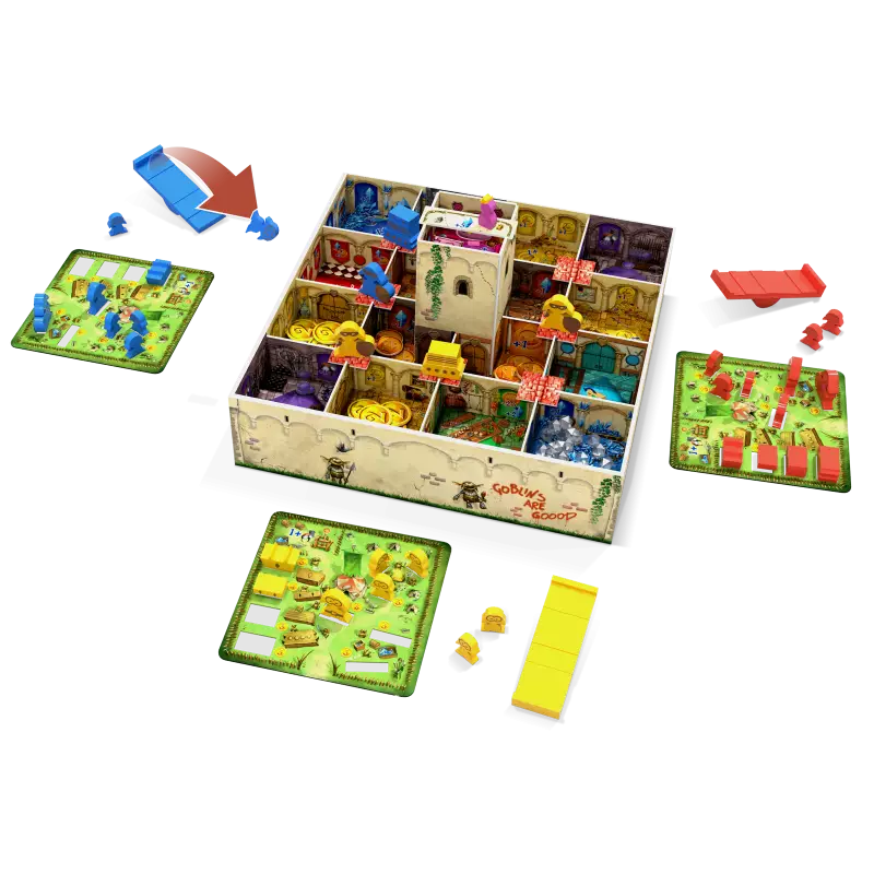 Les règles de Flyin' Goblin sont simples et fluides, idéales pour les débutants comme pour les joueurs expérimentés. Lancez vos Gobelins, récoltez des trésors ou construisez votre totem pour remporter la victoire. Chaque partie offre son lot de rebondissements grâce aux différentes salles et actions possibles.