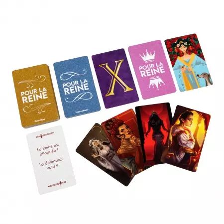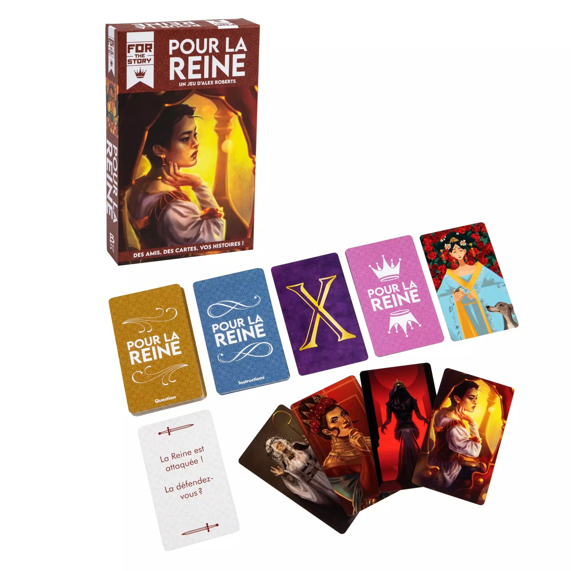 Pour la Reine est un jeu de construction d'histoires à l'aide de cartes, accessible à tous et qui se joue en quelques minutes.