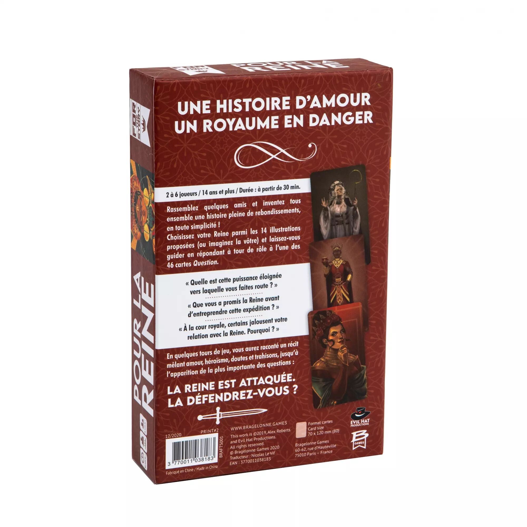 Choisissez votre Reine parmi les illustrations proposées dans la boîte - ou imaginez la vôtre en vous fiant à votre imagination - puis laissez-vous guider en répondant aux cartes Question afin de tisser ensemble un récit empli d'amour et d'héroïsme, mais aussi de trahisons et de doutes !