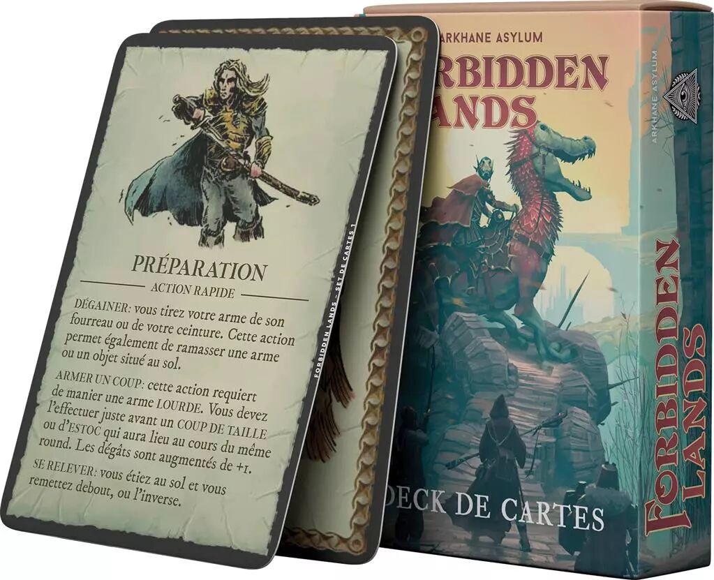 Le deck contient 55 cartes décrivant les artefacts magiques, montures et manœuvres de combat.