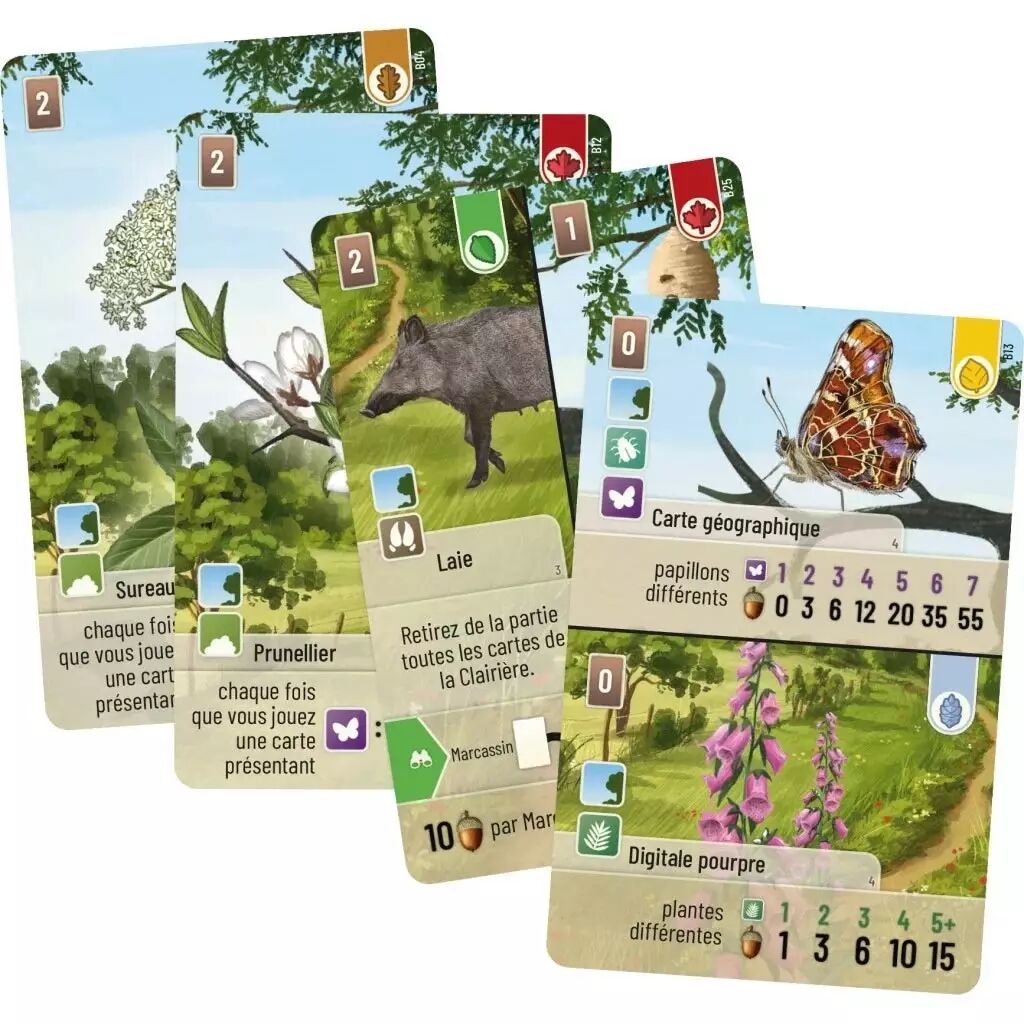 Avec 36 nouvelles cartes, dont 12 Arbustes, cette extension transforme vos stratégies habituelles. Vous devrez combiner astucieusement les cartes haut/bas et gauche/droite pour optimiser vos zones de forêt et attirer le maximum d'animaux. Simple à ajouter au jeu de base, elle propose des mécaniques adaptées à tout type de joueur, qu’il soit novice ou expérimenté.
