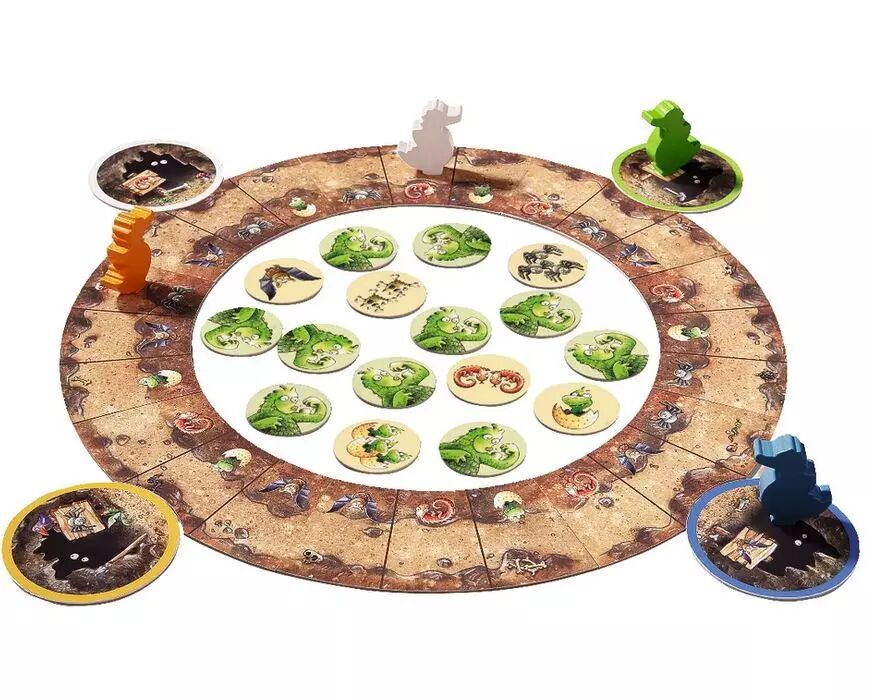 Ils dansent et sautent joyeusement au bord du cratère du volcan qui est en train de cracher du feu. Ils sont même tellement courageux qu'ils veulent organiser une course de dragons autour du volcan. Quel joueur parviendra a atteindre l'arrivée en premier avec son dragon ? En jouant à ce jeu de mémoire et de course fort comme un dragon, les joueurs stimulent leur concentration et leur mémoire immédiate. Les cartes de dragons au milieu du volcan indiquent de combien de cases le dragon avance. Si la carte retournée présente le même symbole que celui représenté dans la grotte du dragon, celui-ci peut avancer. Si la carte retournée présente un autre symbole, le tour est fini. Fort comme un dragon de HABA convient à toute la famille avec ses règles simples.