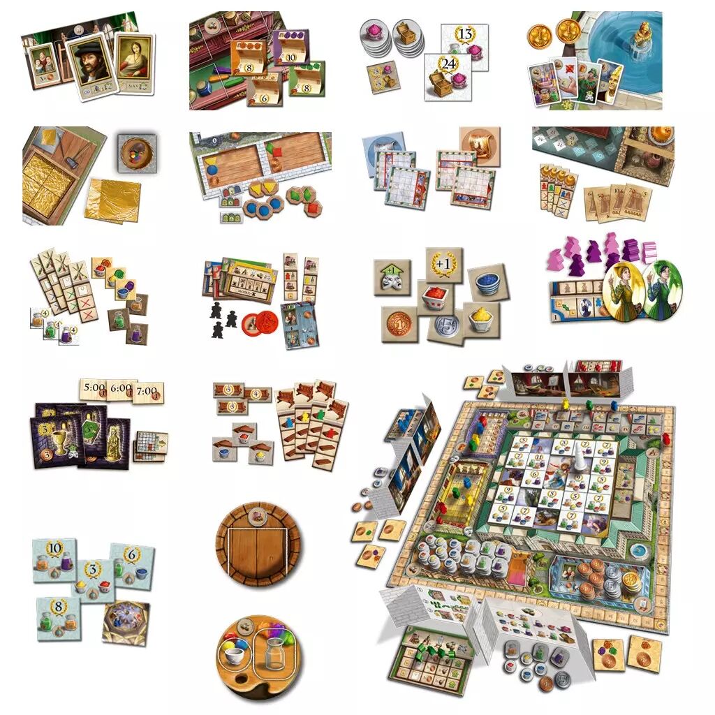 Chaque joueur dirige une équipe d’apprentis peintres avec un objectif : restaurer au mieux la fresque du plafond, acquérir couleurs au marché, les mélanger pour obtenir les bonnes teintes et planifier minutieusement sa journée. Se lever tôt donne accès aux meilleures fournitures, mais au détriment de la bonne humeur de l’équipe ! Marché, restauration, commandes, théâtre… chaque action doit être choisie judicieusement.