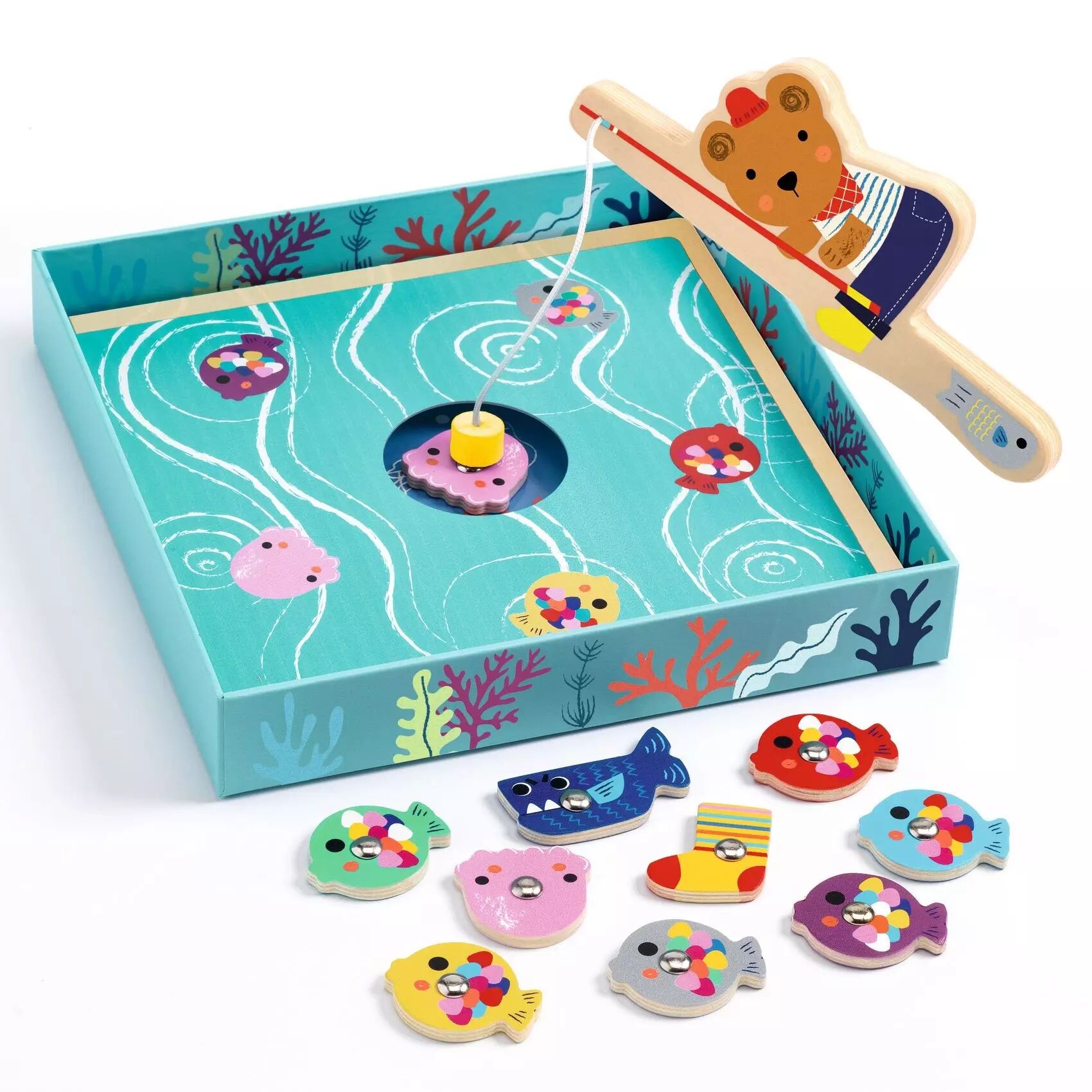 Un jeu plein de surprises: l'enfant découvre ce qu'il a pêché lorsqu'il a ramené sa prise vers le centre.