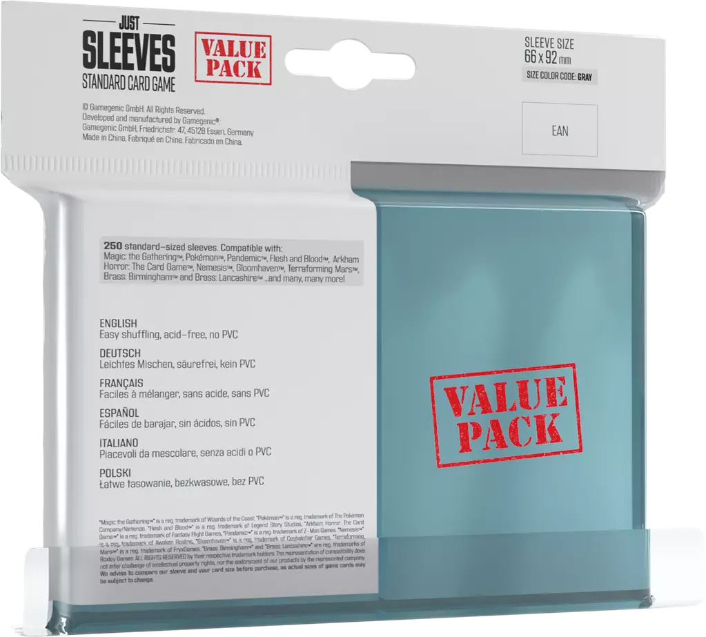 OPTIMISÉ POUR UNE VARIÉTÉ DE JEUX : Notre réponse aux pochettes d'entrée de gamme, les pochettes Just Sleeves sont conçues pour protéger les jeux de société et les jeux de cartes. Chaque paquet contient 250 pochettes de 66 x 92 mm (pour les cartes jusqu'à 64 x 90 mm).
