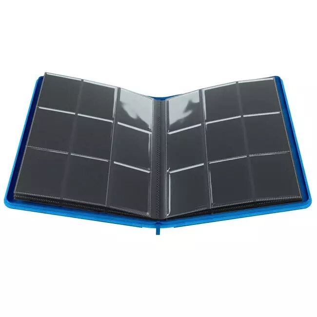 18 pochettes à chargement latéral par par page permettent de garder les cartes à l'abri des secousses