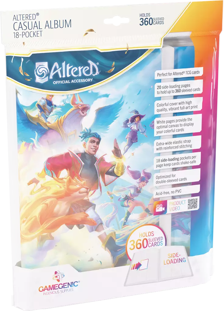 L'album Casual 18 pochettes sous licence officielle est un moyen économique de collectionner et d'organiser vos précieuses cartes Altered®. L'album Casual à 18 pochettes a une couverture colorée avec des reproductions de haute qualité des illustrations du jeu. Il contient 20 pages avec 18 pochettes à chargement latéral chacune, pour une capacité totale de 360 cartes (même sous sleeve perfect fit).