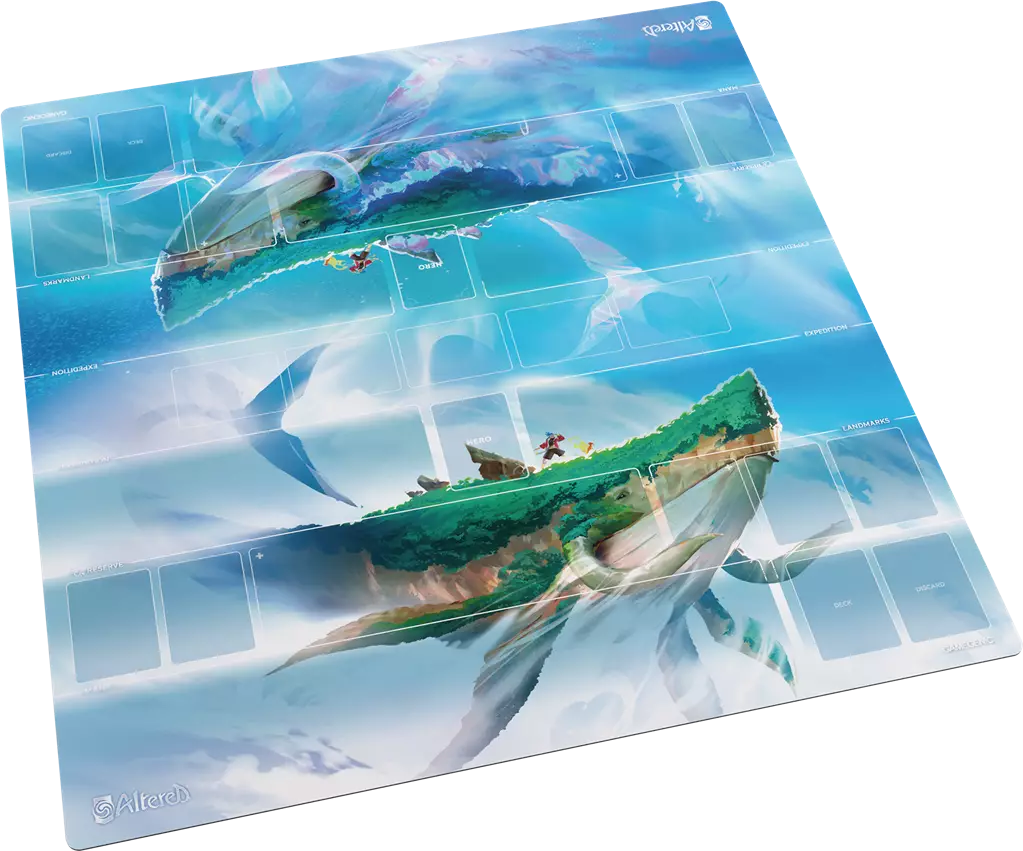 Tapis de jeu parfait pour tous les fans de Altered, mais pas seulement ! Convient également pour de nombreux autres jeux de cartes et de société.