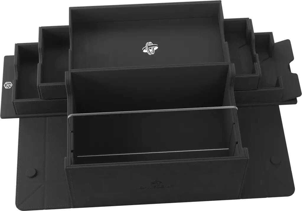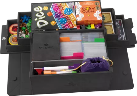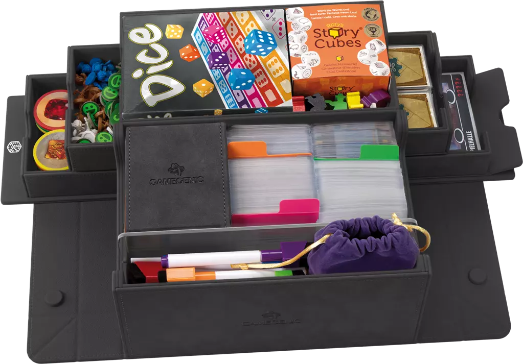 Contrairement aux boîtes standards qui forcent les accessoires dans l'espace principal, la Games Lair propose un tiroir dédié. Jetons spécialisés, cartes promo, documents collectibles—tout trouve sa place sans encombrer vos cartes. Le tiroir peut être retiré pour maximiser la capacité.