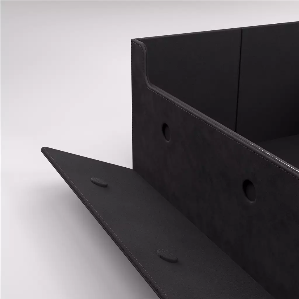 Le couvercle amovible du Dungeon Pro est révolutionnaire. Pendant que vous jouez, clips-le sur le fond de la boîte—cela libère l'espace que le couvercle occupait habituellement sur la table, permettant un accès total à vos boîtes de deck sans encombrement. C'est le détail que les joueurs compétitifs apprécient immédiatement : ergonomie maximale sans sacrifice de sécurité.