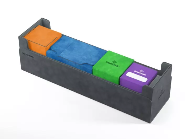Conçue pour contenir boîtes de jeu, tapis de jeu, accessoires et les cartes à sleeve unique (même dans les toploaders).