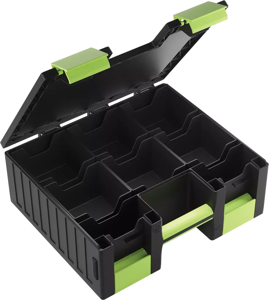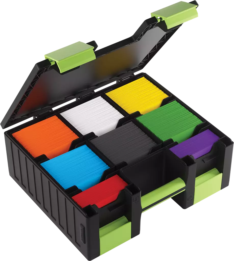 Le Game Castle est une solution ingénieuse, double face et tout-en-un pour les joueurs de plateau, de cartes et les amateurs de jeux de table. Ce tout nouveau produit peut être ouvert des deux côtés pour permettre un accès séparé à un grand nombre de cartes et de jetons. Le design innovant permet un stockage sûr tout en permettant un transport facile et confortable lors des soirées de jeux ou des tournois grâce à la poignée renforcée intégrée et à la bandoulière détachable et ajustable.