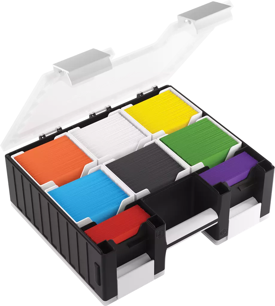 plateaux du Silo à jetons Gamegenic et du Token Silo Cards Add-on sont compatibles, pour de multiples combinaisons de couleurs et de tailles