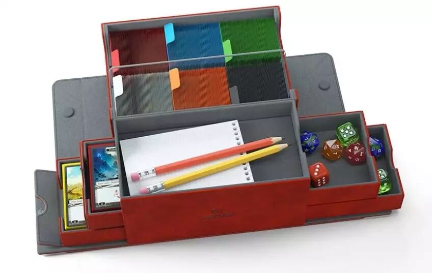 Le Games' Lair 600+ peut contenir 600 cartes à double pochette ou 800 cartes à simple pochette dans le compartiment principal. Si le rangement des cartes n'est pas le but recherché, le séparateur en acrylique peut être retiré pour ranger tout type de boîtes de jeu, de jeux ou d'accessoires.