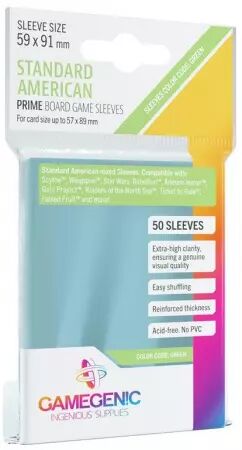 Accueil > Accessoires jeux de cartes > Protège-cartes, Sleeves > Gamegenic - Protège-cartes souples - 59 X 91 mm - PRIME Standard American-Sized - Clear x 50