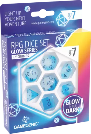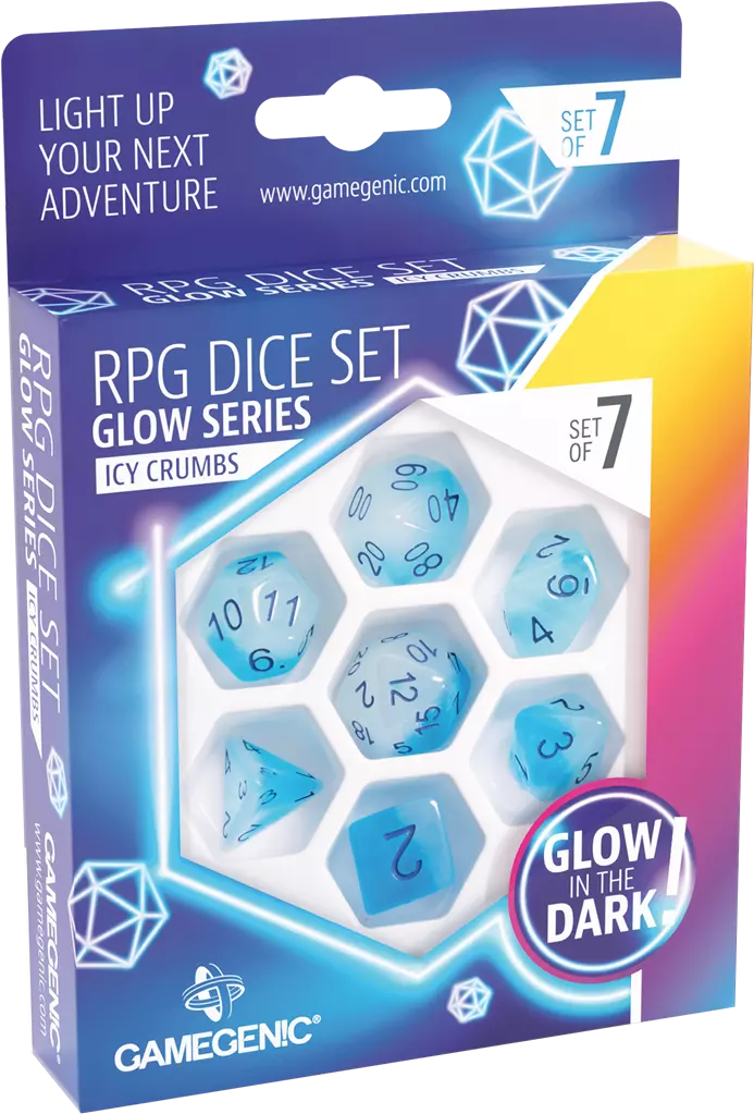 Accueil > Jeux de société > Jeux de rôle > Les accessoires de JDR > Les dés > Gamegenic - Set de 7 dés JDR - Glow Series - Icy Crumbs