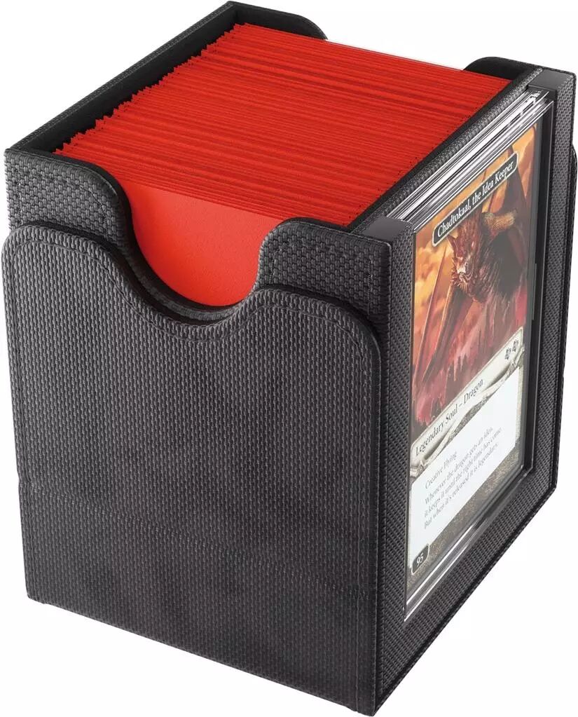 Le Squire PLUS 100+ XL est une boîte de jeu haut de gamme, spécialement conçue pour le format Magic : The Gathering "Commander". Elle comprend un étui à cartes à glissière pour présenter le Commander ou la carte supérieure avec une protection supplémentaire contre les UV. Grâce à l'emplacement innovant, le deck stocké peut être facilement identifié sans ouvrir la boîte. L'étui peut également être détaché et utilisé pendant le jeu.