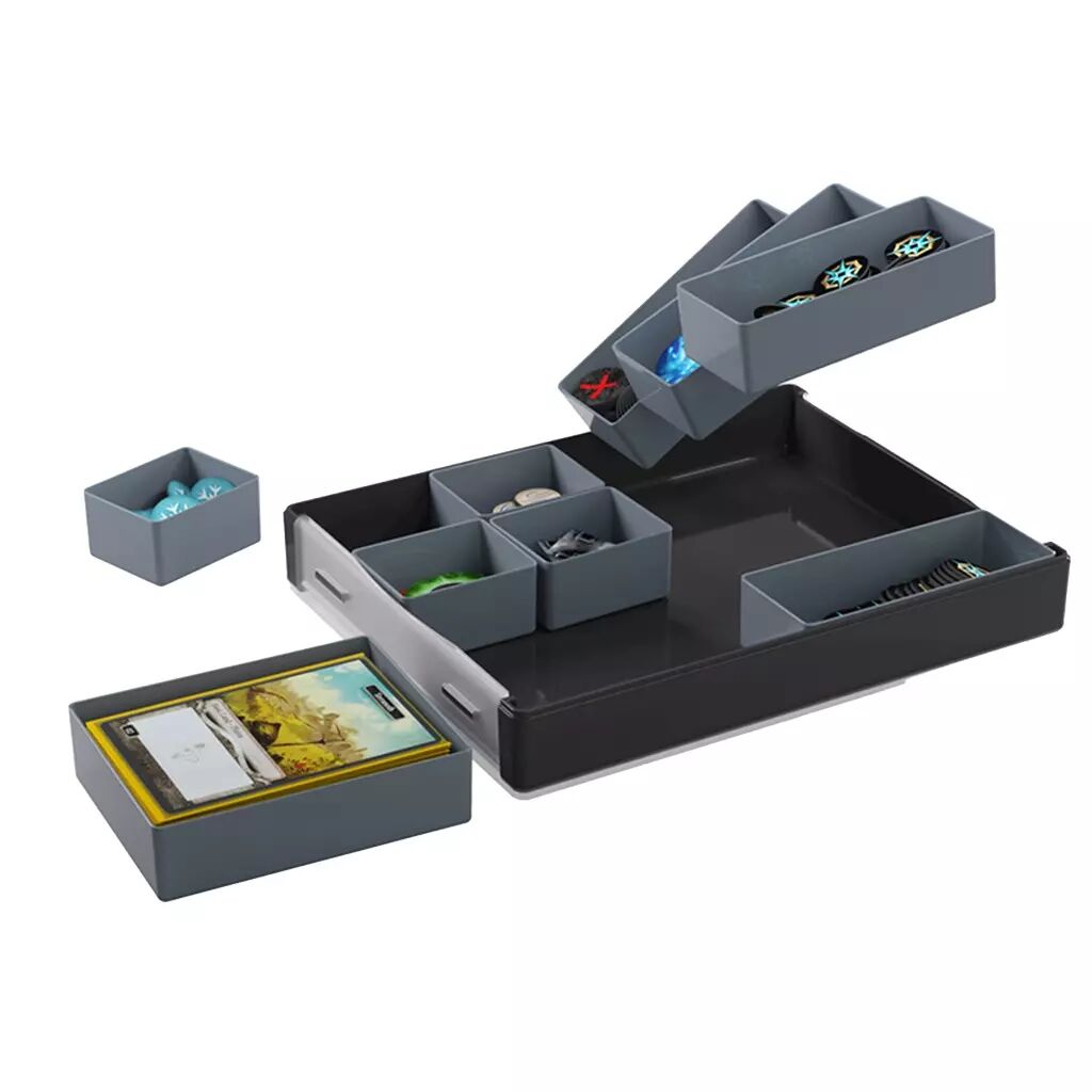 Cette boîte unique et convertible permet de ranger et d'organiser une grande variété de jetons, cartes, cadrans, dés et bien d'autres objets !