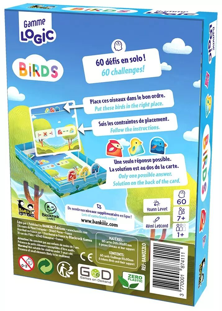 Les défis de Birds (Gamme Logic Bankiiiz Editions) sont basés sur les demandes de placement des oiseaux.