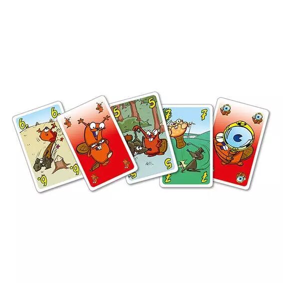 Le but dans Gang de Castors est de ramasser le moins de points possible. Les joueurs posent devant eux 4 cartes faces cachées, seules 2 d’entre elles leur seront dévoilées. A chaque tour, vous avez le choix entre jouer des cartes Action OU échanger vos cartes avec celles de la pioche ou de la défausse. Soyez attentifs et mémorisez bien la valeur de vos cartes si vous voulez faire des échanges judicieux et ramasser le moins de points possible. Mémoire, bluff et coups fourrés sont au programme de ce jeu réservé aux castors les plus rusés.
