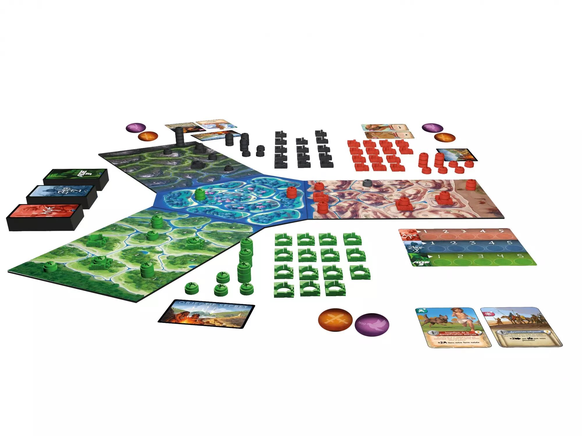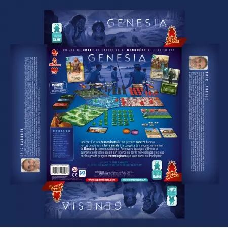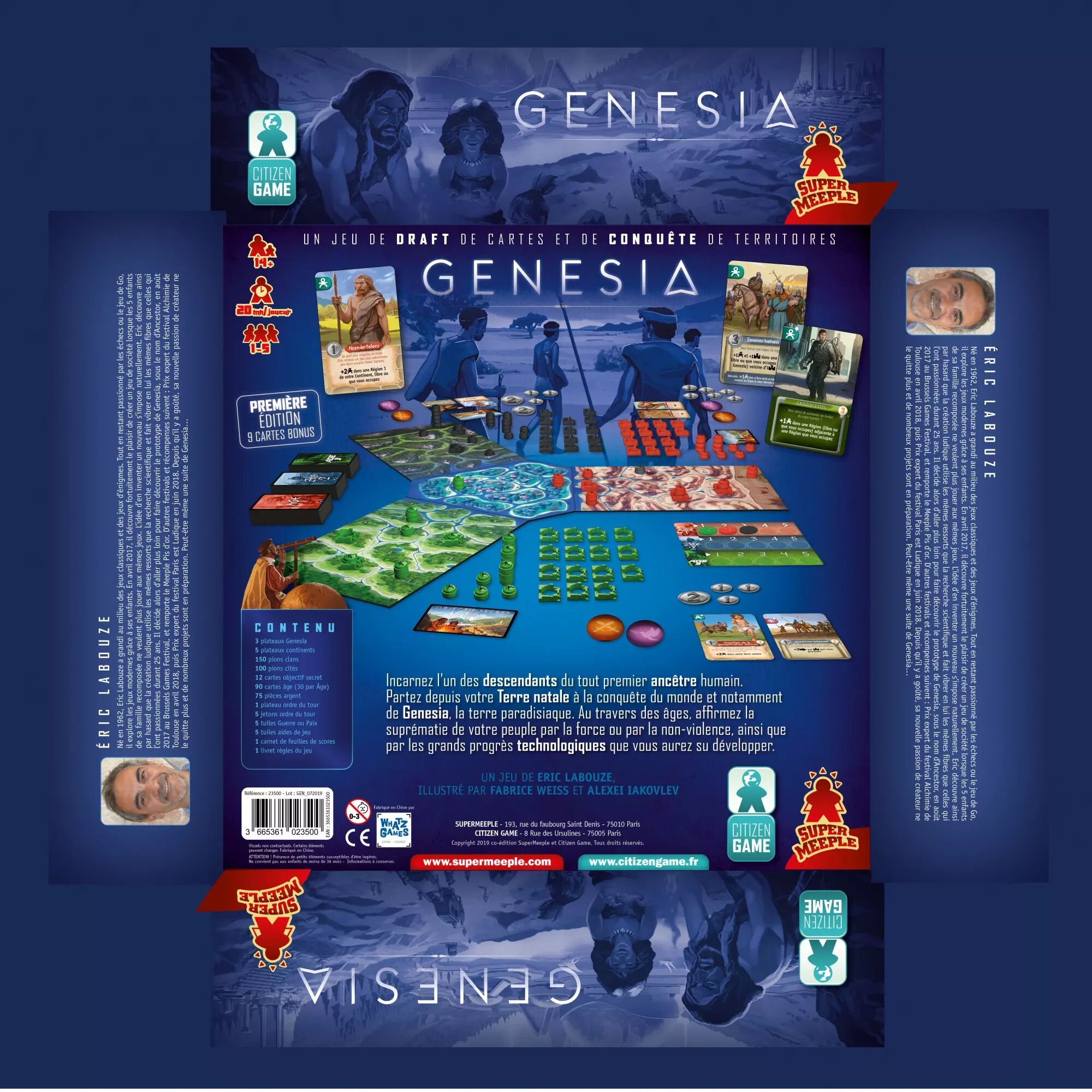 Puis grâce à vos cartes et au choix de vos actions, vous allez créer de nouvelles inventions, sources de bonus et de points, pour faire croître votre population, l'étendre sur de nouveaux territoires ou la renforcer face aux éventuelles attaques. Bien entendu, votre expansion sera également source de points de victoire et en particulier si vous atteignez les fameuses terres de GENESIA, au centre de tous les peuples.