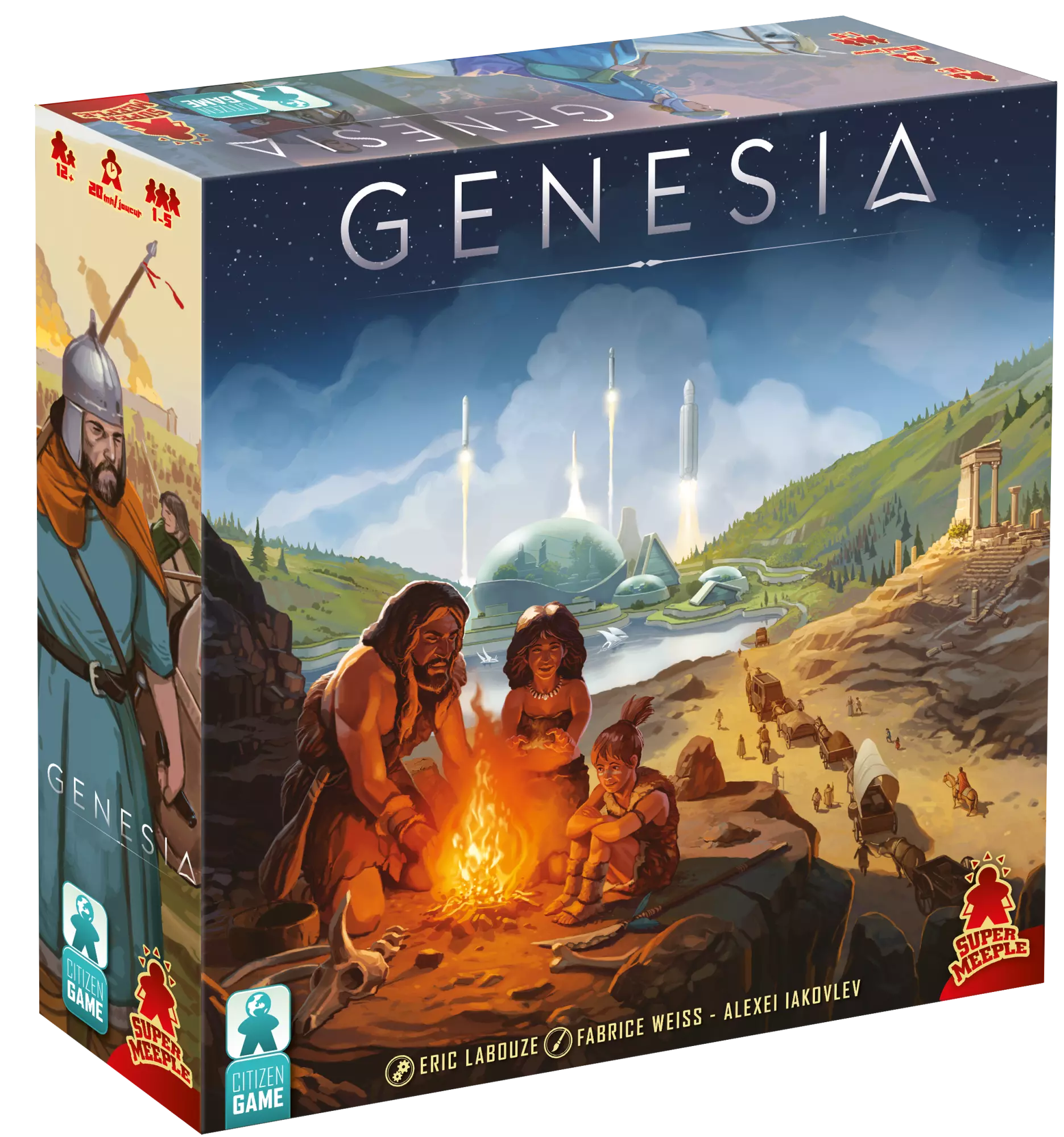 Dans GENESIA, vous incarnez une peuplade qui va se développer sur trois âges de civilisation, depuis l'aube de l'humanité jusqu'à nos jours et au-delà. A chaque âge, vous devrez faire les meilleurs choix lors d'un draft de cartes.