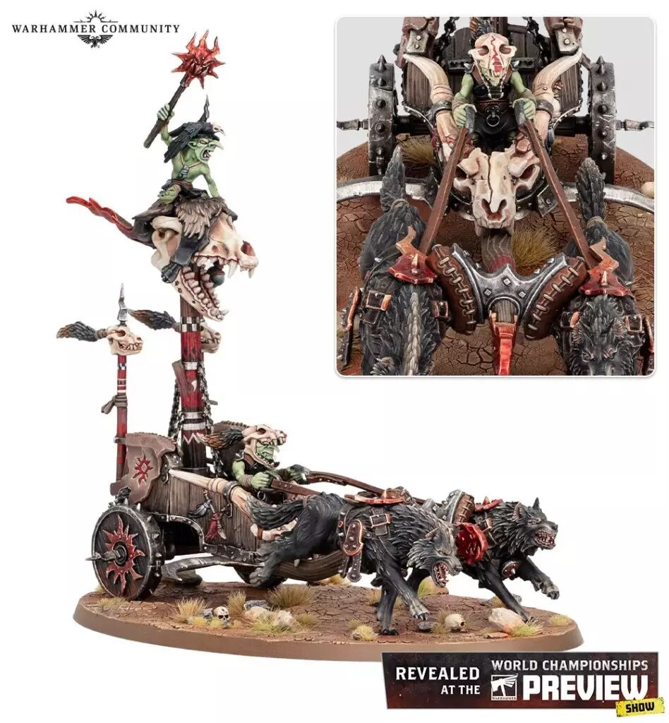 Ce kit en plastique permet d'assembler un lourd char Rouleguerre pour vos armées de Vils du Fielobscur à Warhammer Age of Sigmar. Il peut emporter un Grogneboss, idéal pour mener la charge et inspirer le reste de vos grots, ou un Chamane de Krèvzyeux, capable de projeter des conjurations ardentes. Le Grogneboss dispose d'un choix de deux têtes et deux hauts de bannière, et le Chamane peut être assemblé avec un bâton magique parmi deux différents. Ce char et ses deux gros Grognecrocs procurent une excellente puissance de frappe à n'importe quelle Vilebande.