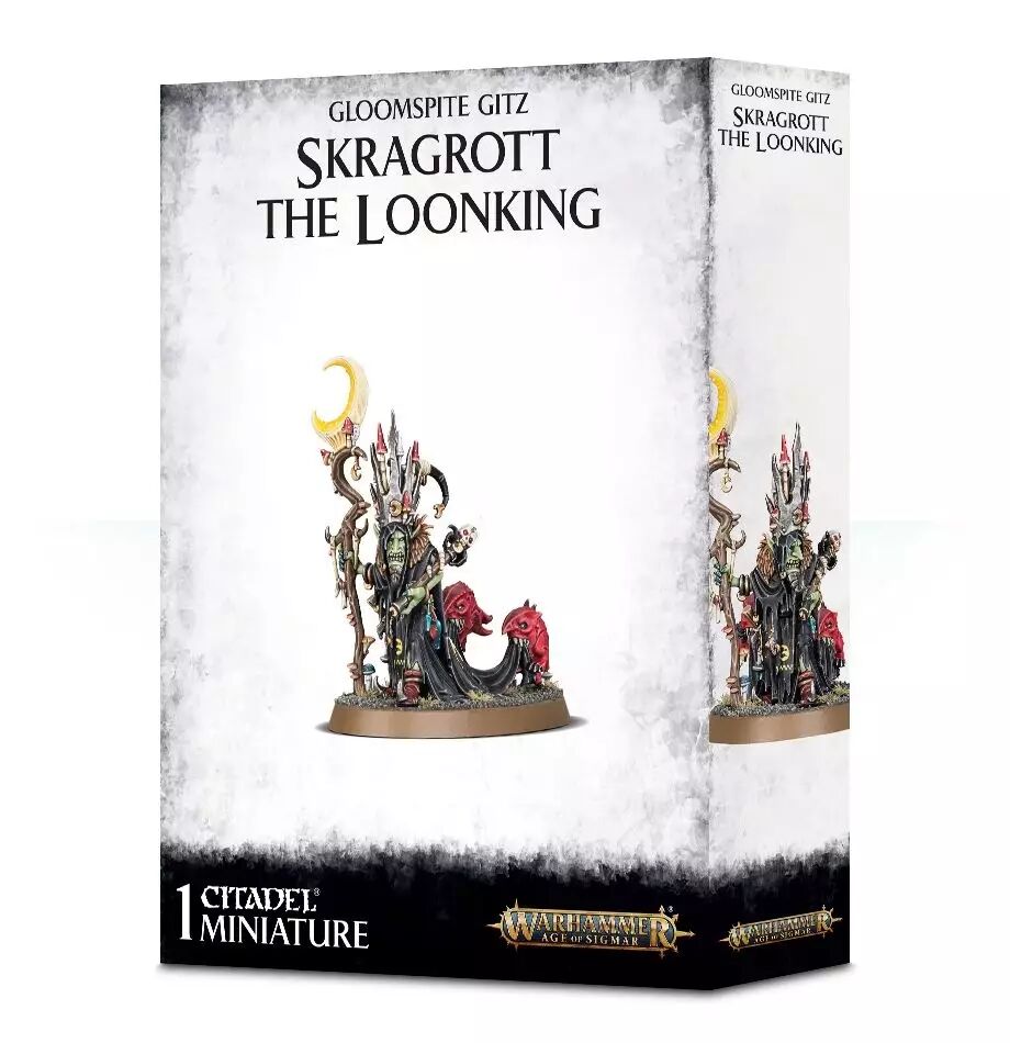 Skragrott the Loonking est le suzerain autoproclamé des Gloomspite Gitz. Sa sinistre présence sur le champ de bataille pousse ses congénères grots à se battre avec plus de ruse et de méchanceté que jamais.