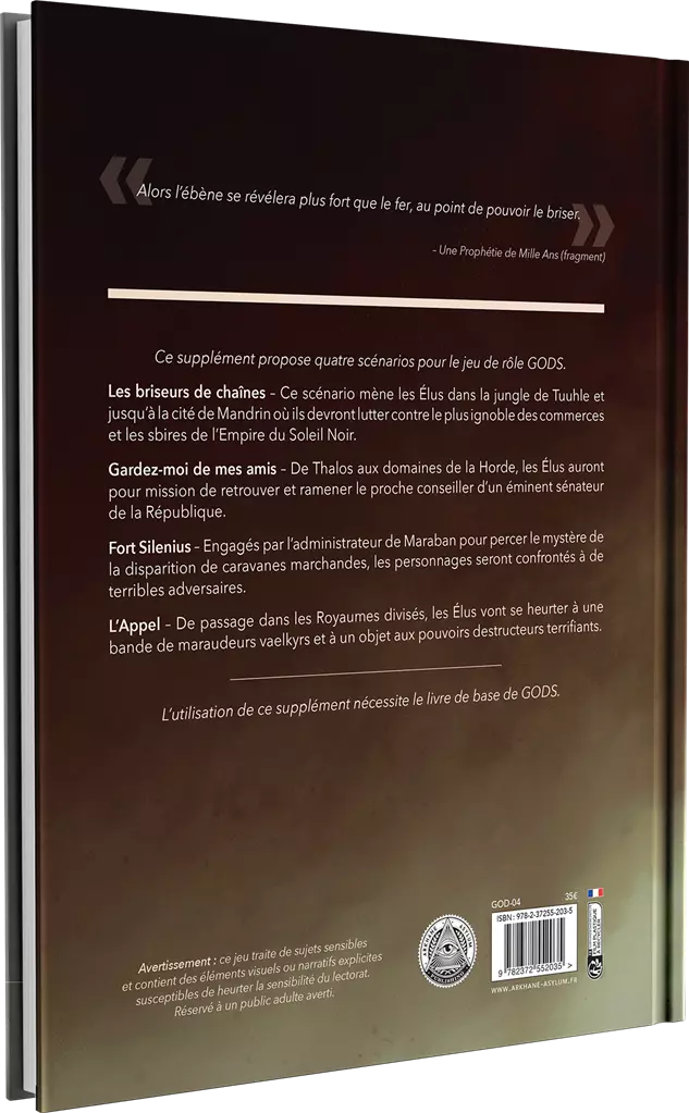 Ce supplément propose quatre scénarios pour le jeu de rôle GODS.