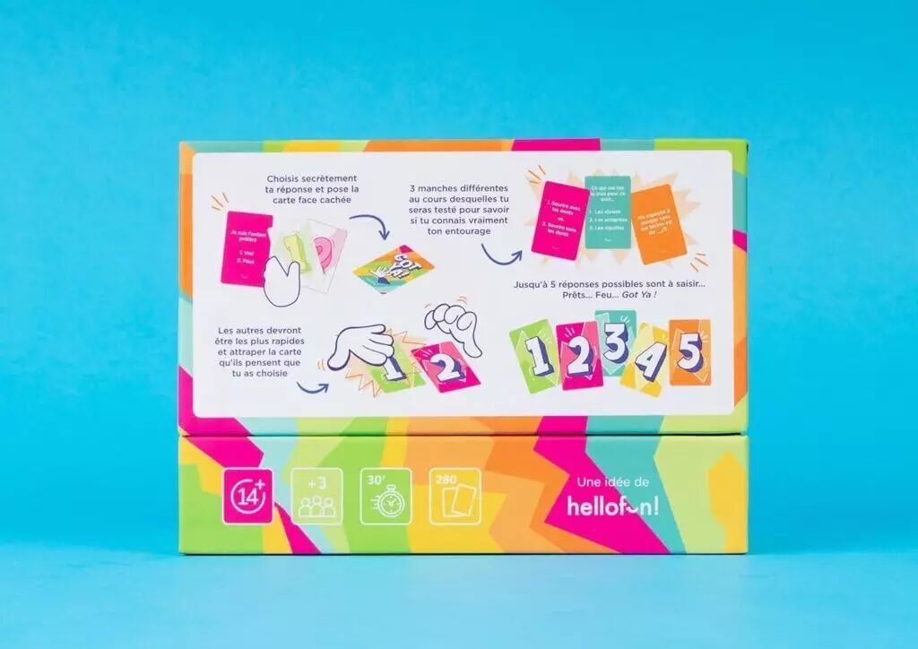 Gotya, le jeu d’ambiance qui allie rapidité, intuition et stratégie ! Parfait pour animer vos soirées en famille ou entre amis, ce jeu mettra à l’épreuve votre capacité à deviner les réponses des autres... et à attraper la bonne carte avant tout le monde. 🃏⚡