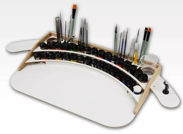 Les stations de peinture avec des fentes plus grandes - 36 mm permettent de ranger proprement les pots/bouteilles de peinture tels que :
