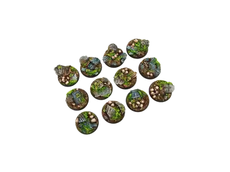 Réf. : B00821 Ce pack contient un ensemble de 5 socles en résine de 25mm non peints choisis de manière aléatoire parmi les designs présentés sur l'image.
