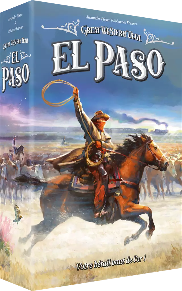 Dans Great Western Trail - El Paso, plongez dans l’ambiance effervescente de la fin du XIXe siècle. Vous incarnez un éleveur ambitieux qui conduit son troupeau à travers les vastes plaines jusqu’à El Paso, plaque tournante du commerce ferroviaire. Chaque décision compte : vendre votre bétail, investir dans le chemin de fer ou construire des bâtiments stratégiques pour devancer vos concurrents.