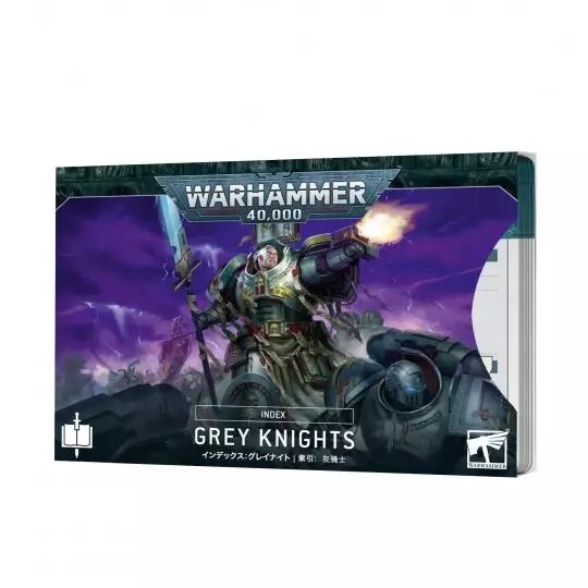 - 3x Cartes d'Index des Grey Knights, détaillant les règles d'armée de la faction et le Détachement Force de Frappe Téléportée