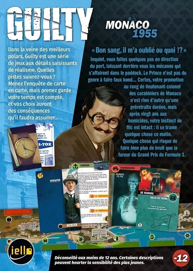 Dans Guilty : Monaco 1955, vous incarnez un lieutenant-colonel des carabiniers de Monaco chargé d'enquêter sur la disparition mystérieuse du Prince Rainier III. Plongez dans un monde de mensonges, de trahisons et de secrets enfouis pour découvrir la vérité et rendre justice.