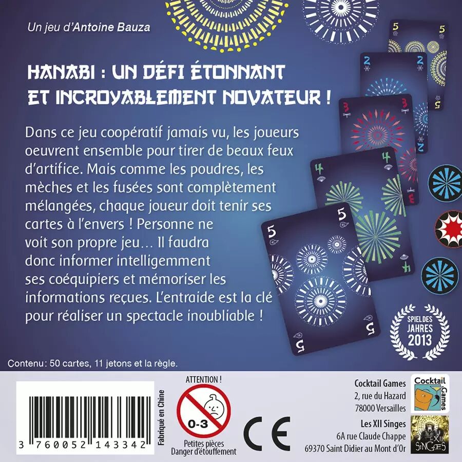 Dans ce jeu coopératif jamais vu, les joueurs œuvrent ensemble pour tirer de beaux feux d'artifice. Mais comme les poudres, les mèches et les fusées sont complètement mélangées, chaque joueur doit tenir ses cartes à l'envers ! Personne ne voit son propre jeu... Il faudra donc informer intelligemment ses coéquipiers et mémoriser les informations reçues. L'entraide est la clé pour réaliser un spectacle inoubliable et éviter les huées de la foule...
