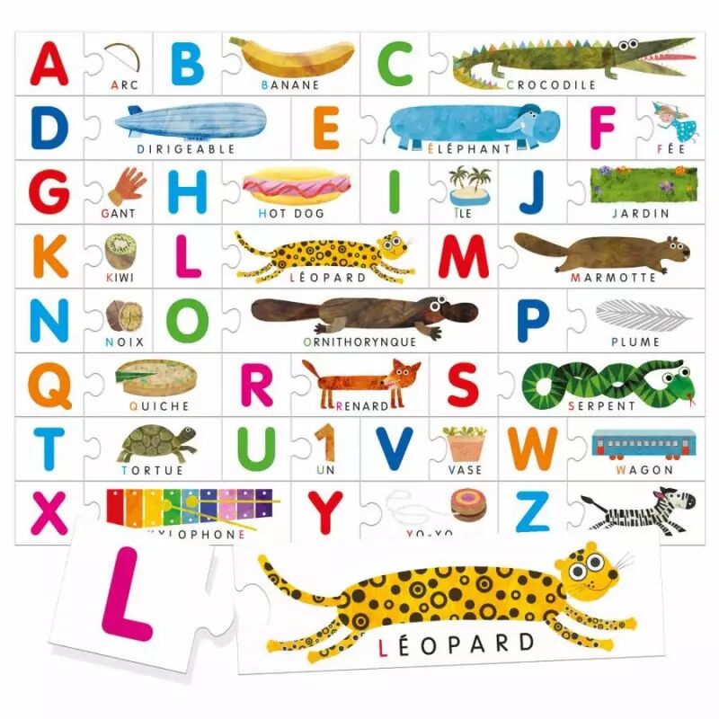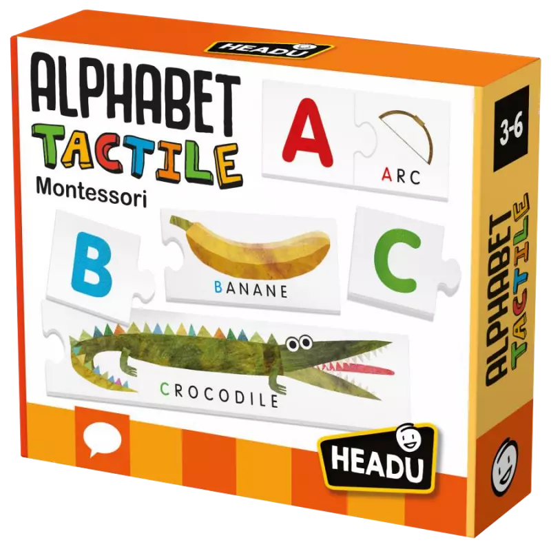 L'enfant touche les lettres imprimées en relief, associe les mots aux graphèmes et, grâce aux pièces auto-correctives, il apprend l'alphabet ainsi qu'à distinguer les mots les plus courts des plus longs.