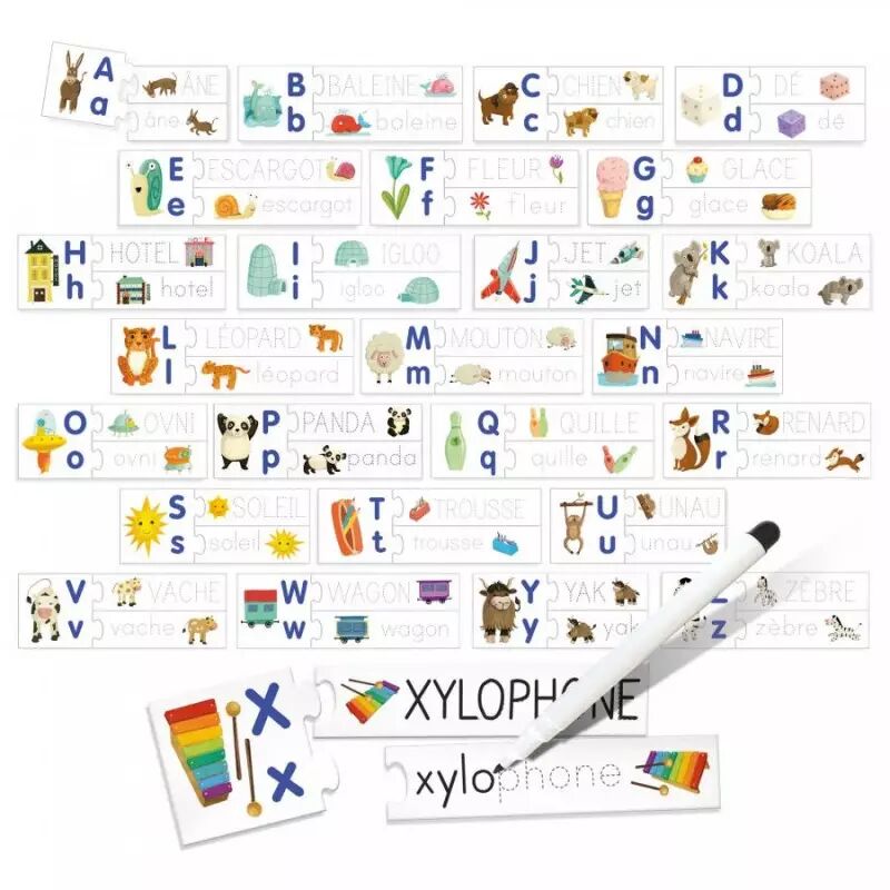 L'enfant associe lettres, mots et images en complétant un abécédaire riche et coloré. De plus, grâce à la méthode qui consiste à décalquer, il apprend à écrire les mots en majuscules et minuscules. Le feutre magique lui permet d'effacer et d'affiner ses gestes graphiques.