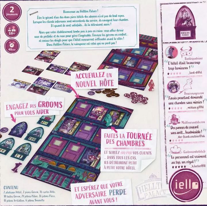 Choisissez vos clients et positionnez vos clients en fonction de l'étage où ils souhaitent être placés ! Votre équipe de Grooms sera aussi là pour vous aider à satisfaire vos clients, moyennant finances évidemment...Votre stratégie sera donc de placer et d'accueillir les clients qui arrangeront le plus votre hôtel et ceux qui pourraient être utiles pour votre adversaire.
