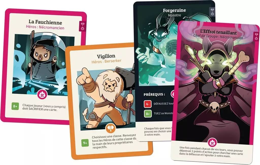 31 cartes de taille standard, 2 cartes Chef de partie, 2 cartes Monstre.