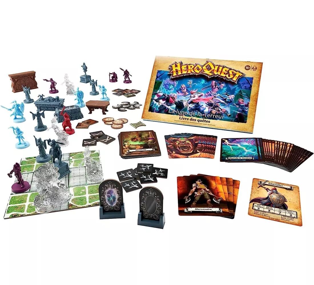 Comprend un livre de quêtes avec 10 quêtes, 29 figurines finement détaillées, 2 supports de miroir, 58 cartes, une feuille de titre et un guide de jeu.