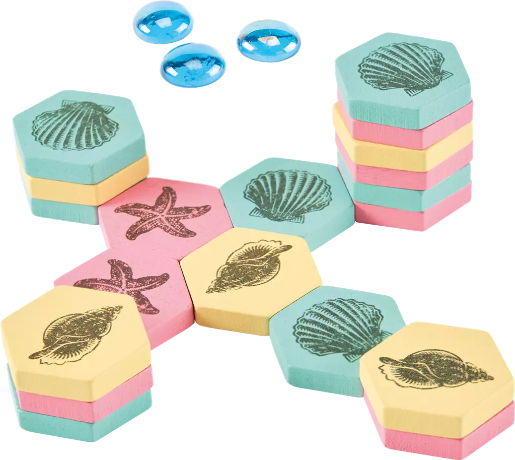 L'anticipation sera la clé de ce duel rapide et subtil. Vous serez immanquablement séduits par la qualité du matériel reflétant la beauté de l'univers marin avec des dessins épurés et des couleurs pastel. Les éléments ont aussi été réfléchis dans un souci d'écologie et de praticité : tuiles en bois, pierres en verre, un sac tissu pour ranger les éléments et une boîte à clapet aimanté compacte pour tout emporter.