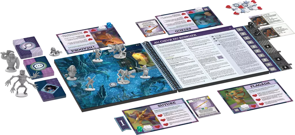 32 pions Rembourrage, 16 pions Cœur, 4 pions Objectif, 1 pion Marque-Page, 1 pion Porte, 1 pion Chariot Rouge, 1 pion Train, 4 pions Égaré
