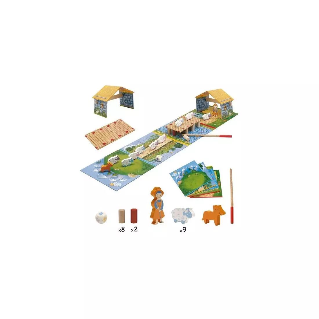 Réf. : DJ08408 Hop ! Hop ! Hop ! Jeu coopératif dans lequel vous devez vite faire rentrer les moutons à la bergerie sans que le vent fasse s'écrouler le pont. Dès 4 ans.